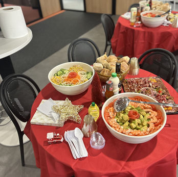 Moment de convivialité entre collègues autour d’un buffet gourmand signé SAULH — une pause bien-être qui rassemble, inspire et valorise les équipes.
